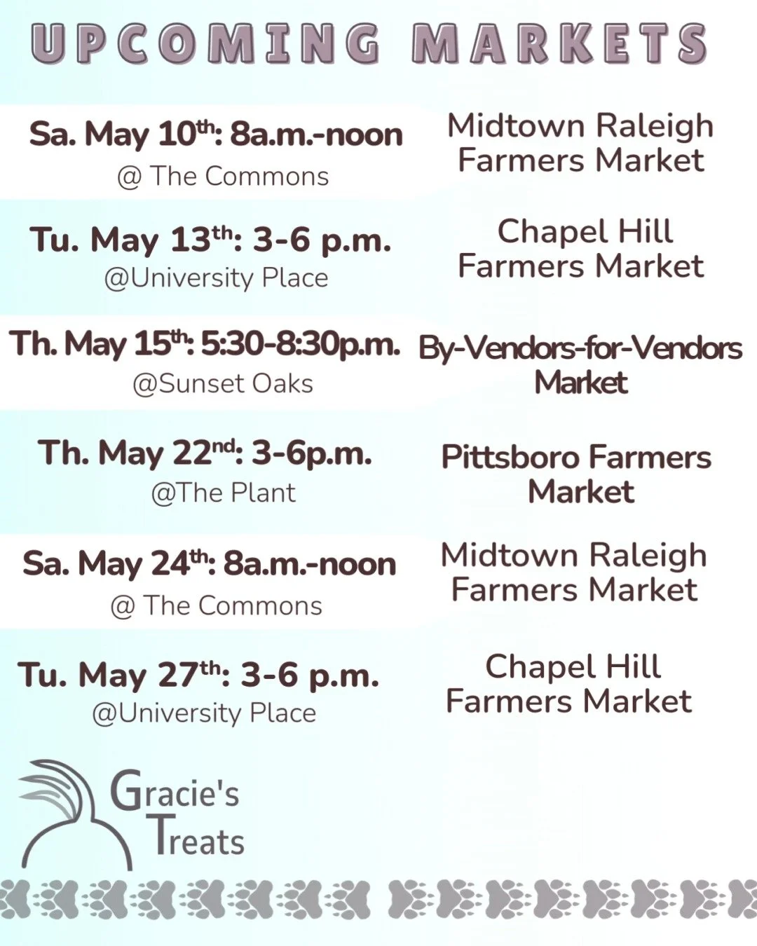 Gracie’s Treats strives to create high quality pet treats sustainably through seasonal sourcing of ingredients. Our business model is rooted in intentional relationships with local small-to-medium NC farms and food producers who also strive for sustainability through practices like organic growing, small-scale pasturing and rotational grazing.