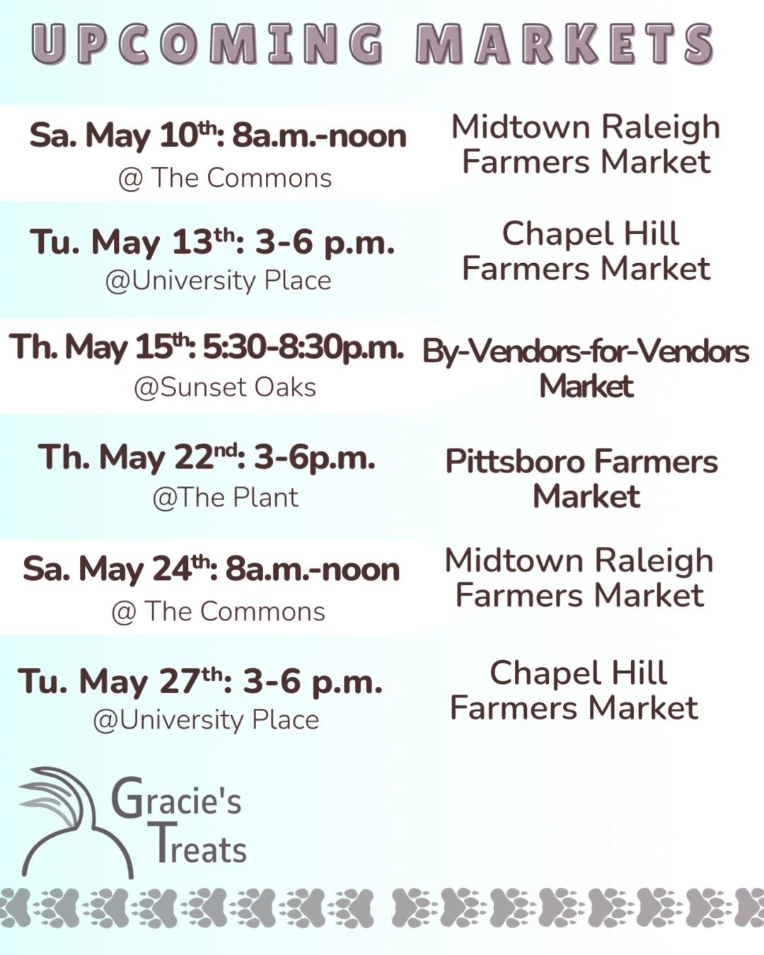 Gracie’s Treats strives to create high quality pet treats sustainably through seasonal sourcing of ingredients. Our business model is rooted in intentional relationships with local small-to-medium NC farms and food producers who also strive for sustainability through practices like organic growing, small-scale pasturing and rotational grazing.